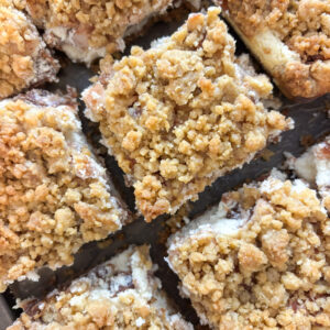 Made with homemade apple butter and a crunchy crumble topping, these bars are the perfect mix of warm, rich apple flavors and creamy cheesecake.