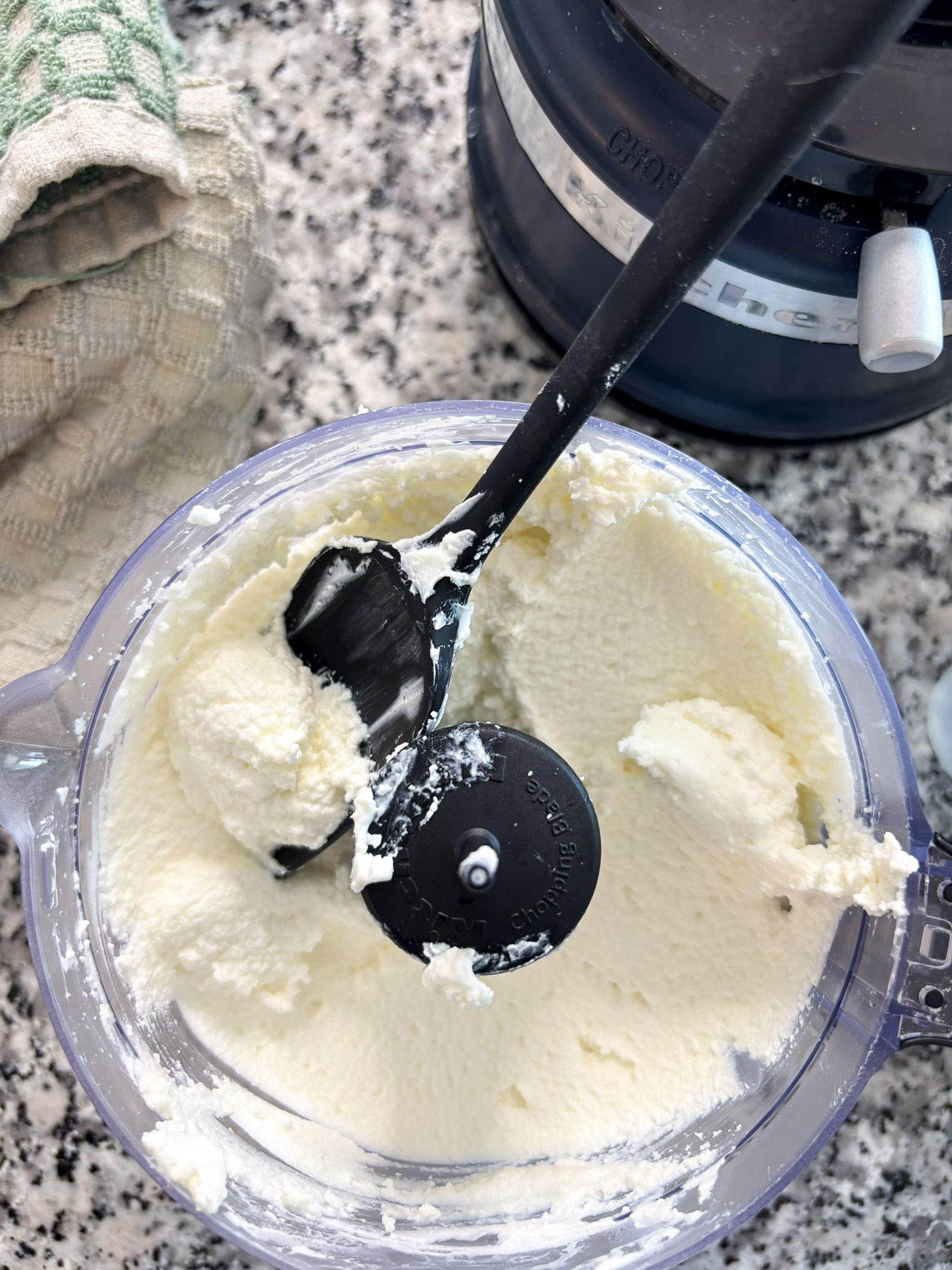 • Combine the curds and the labneh in a food processor or blender and blend until smooth (if it's too thick, you can add a tbsp or 2 of milk but if you use a strong blender you shouldn't need to)