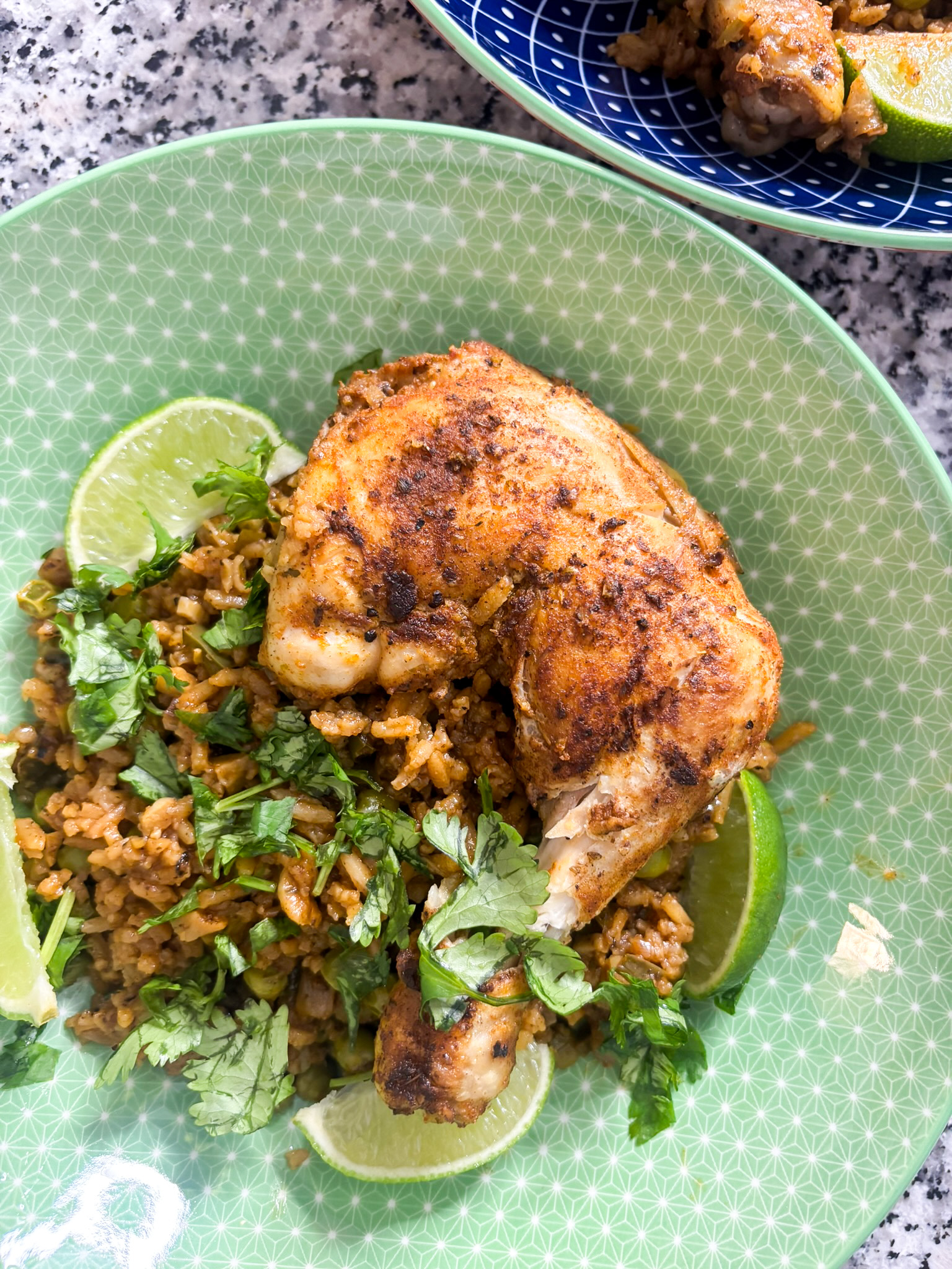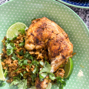 Finish everything off with a little fresh cilantro and a squeeze of lime juice and in under an hour you’ll have a perfectly seasoned one pot dish with tender, juicy seasoned chicken and fluffy rice that you’ll want to make on repeat.