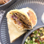 These Doner Kebab Wraps are my take on the viral recipe: slices of crispy yet juicy seasoned beef, a quick and delicious lemon garlic herb sauce wrapped in soft, fluffy flatbread and served with a simple tomato-cucumber salad.